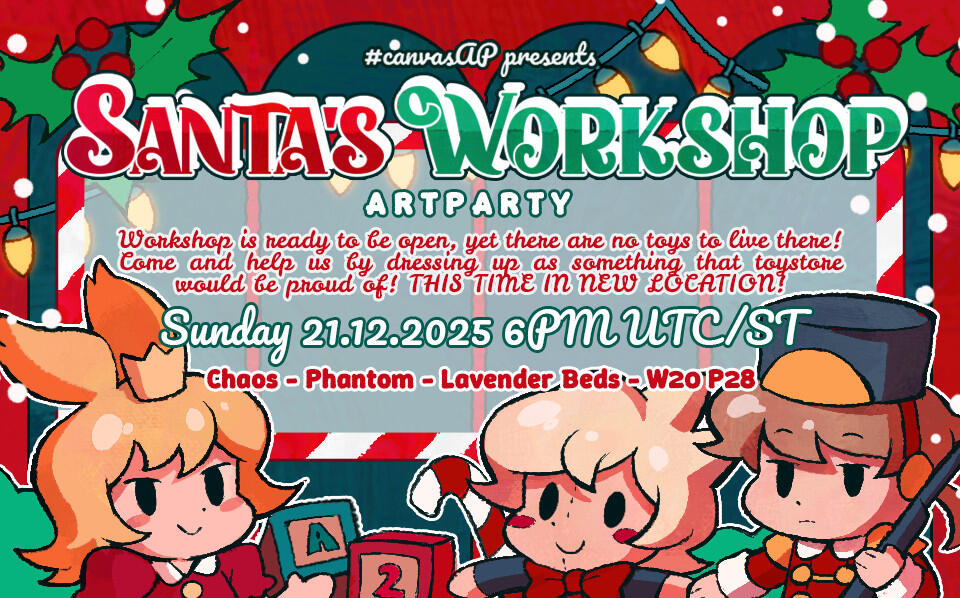 Canvas Café is a safe space for all fellow art enjoyers, no matter the form, combined with casual, SFW in-game roleplay. Either you like to draw, write, do gposes, create any form of art, or simply want to spend quality time in friendly company - you are most welcome in our abode!We will be opening our venue biweekly on Sundays to host themed Art Parties. However, if you are interested in hosting an Art Party yourself, but looking for a suiting place, we'd be happy to make the Café accessible to rent for anyone! Just simply contact us on our social media profiles.We ask all our guests to be polite and respectful towards everyone in our venue, since we aim to create a wholesome space where everyone, no matter who they are, can feel safe and welcome. <3We encourage you to post creations made in Canvas Café on your socials using #CanvasAP hashtag!