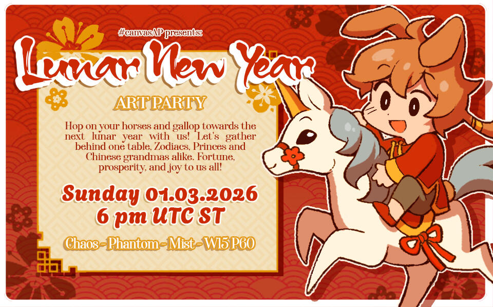We want to welcome you in our humble abode, where you can draw and eat to your heart's content!We will be opening biweekly on Sundays!Uploading your creations remember to use #CanvasAPWe do not approve any AI usage.Be sure to check out our future Events